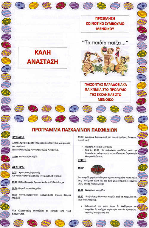 Πασχαλινές Εκδηλώσεις Μενοίκου