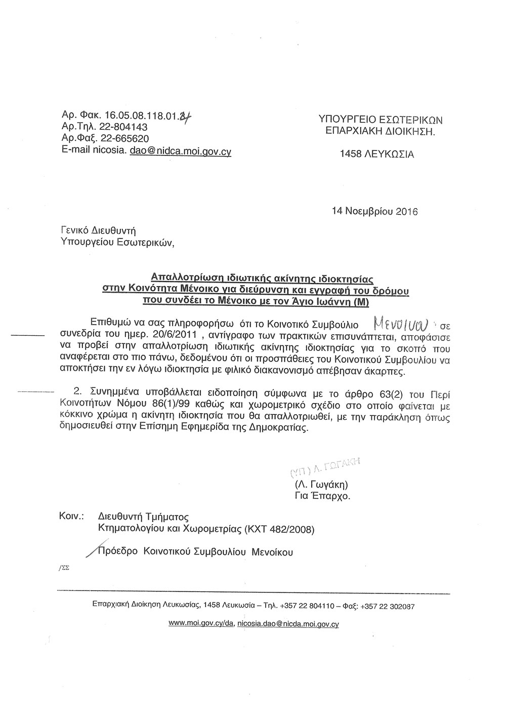 ΚΟΙΝΟΤΙΚΟ ΣΥΜΒΟΥΛΙΟ ΜΕΝΟΙΚΟΥ Αγίου Κυπριανού 18 2728, Μένοικο Λευκωσία Τηλ: 22821478 Φαξ: 22821033 Email: [email protected]
