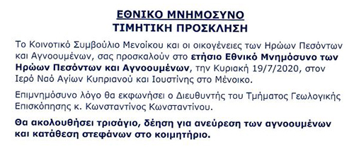 Ετήσιο εθνικό Μνημόσυνο Ηρώων Πεσόντων και Αγνοούμενων 19/7/2020
