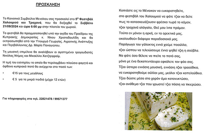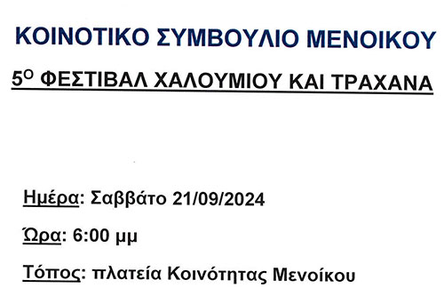 5ο Φεστιβάλ Χαλουμιού και Τραχανά 21/09/2024 |